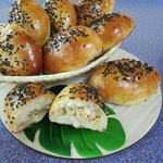 Выпекала все на двух противенях сразу на разных уровнях (подрумянились по-разному). Смазанные яйцом (20мин) сильно зарумянились, поэтому пришлось вытащить(хотя нужно может их было поменять местами в духовке?)