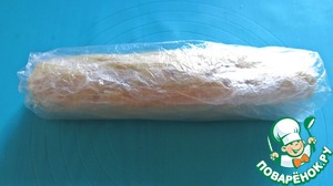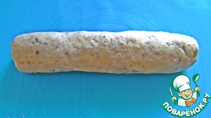 Замесить тесто. Сначала оно будет очень липнуть к рукам, но потом уплотнится. Когда тесто будет готово, надо сделать из него "колбаску"!