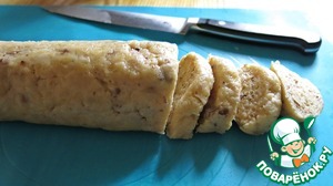По истечении времени достаем нашу "колбаску" и нарезаем острым ножом на печенье. Около 1 см толщиной.