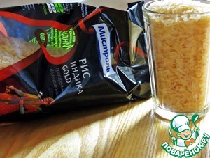 Начнем мы, конечно, с риса. Отмеряем граненый (проверенный временем!) стакан риса. Я использую рис "Индика Gold" от ТМ "Мистраль". Он отлично подходит для любых целей! -