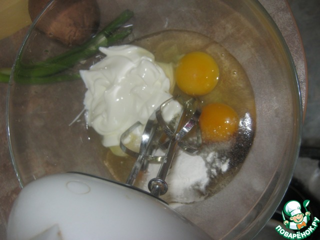 Смешать перец, яйца, сметану, соль, разрыхлитель