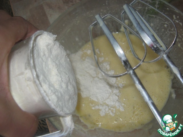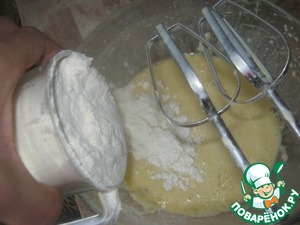 Тщательно размешать и добавить муку, вымешивая тесто без комочков, до густой массы