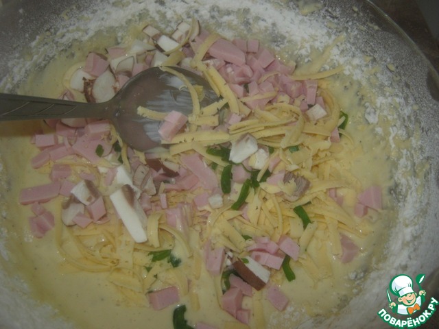 Аккуратно соединяем с тестом (перемешивая ложкой снизу вверх)