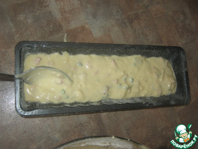 Выкладываю в форму предварительно смазанную растительным маслом (размер формы 25 на 10-вышло теста на 2 формы)