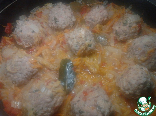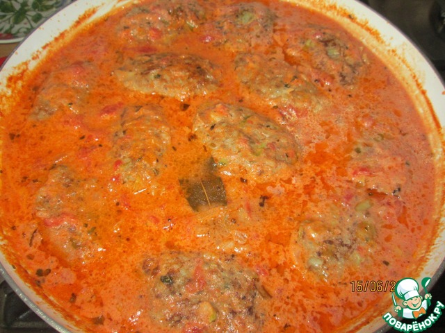 Заливаем соусом котлетки - ленивые голубцы, добавляем лавровый лист и по желанию красный жгучий перец. Доводим до кипения, убавляем огонь и тушим на медленном огне 20 минут.