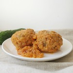 Берём мясной фарш, у меня смешанный, кладём остывший рис.
