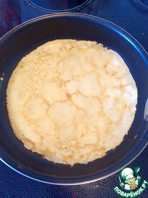Начинаем печь. Чем тоньше блинчики, тем вкуснее, я блинчики не переворачиваю, пропекаю с одной стороны.