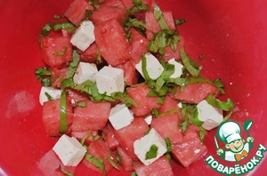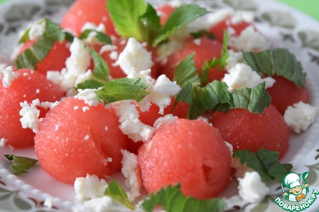 Салат из арбуза с сыром фета