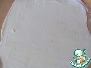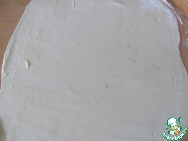 3. Тесто тонко раскатать, нарезать на длинные, тонкие полоски.