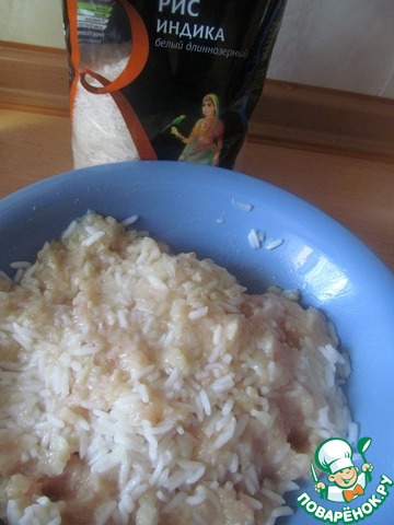 1. Рис отварить до готовности, соединить с фаршем, добавить яйцо, соль, перец по вкусу.