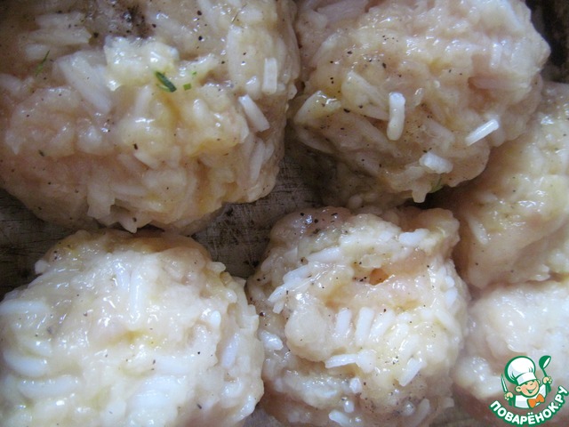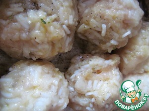 3. Сформировать тефтельки, а внутрь вкладывать кусочек сулугуни.