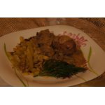 Обычные тефтели с сюрпризом внутри, пока они горячие внутри расплавленное сулугуни. И все это в грибной подливе.