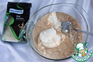 В подготовленный рис добавить масло подсолнечное или растительное, творог (у меня домашний творожок, не устаю благодарить за него поваренка Виолетту (Violl), огромное спасибо) и сливочный ликер (я использую "Бейлиз"). Тщательно перемешать.