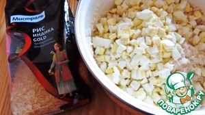 Яйца нужно заранее отварить, остудить и нарезать кубиками. Добавляем яйца в готовую, горячую рисовую кашу.