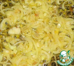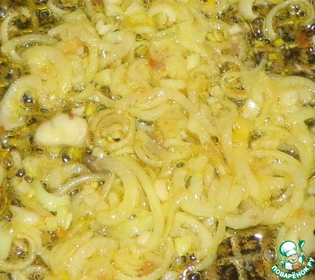 На оливковом масле обжариваем порезанный репчатый лук около 2-х минут.
