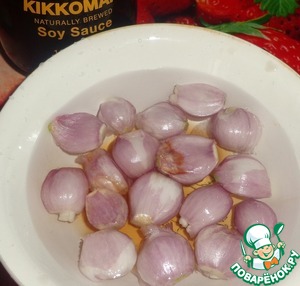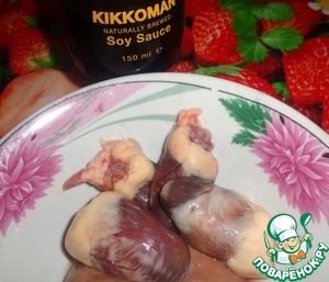 • Итак, куриные сердечки сбрызнуть соевым соусом Kikkoman,