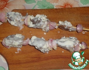 Рецепт «Шашлык из куриных сердечек и маринованный лук»: