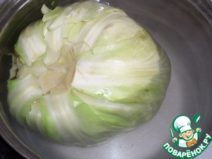 Отвариваем вилок капусты, убрав кочерыжку. Остужаем.