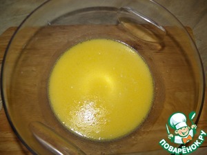 Растопить сливочное масло, добавить теплое молоко и 60 гр сахара. Все перемешать.