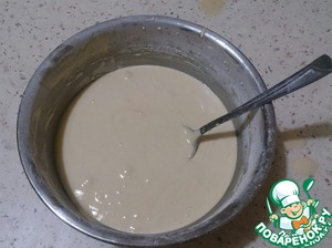 3 ст. л. меда смешать с сахаром. Густой мед я немного подогреваю на плите, что бы он стал жидким. Добавить 3 яйца и соду, взбить миксером.