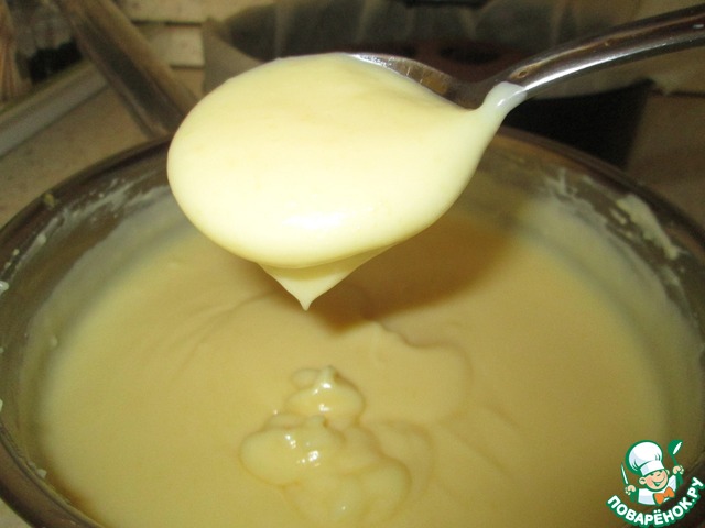 500 мл молока нагреть и влить тонкой струйкой, постепенно, в желтковую массу. Ставим на маленький огонь и при постоянном помешивании греем до загустения ( я довожу до первых пузырьков). Выключаем огонь, добавляем ванилин и масло, тщательно вымешиваем до гладкости крема.