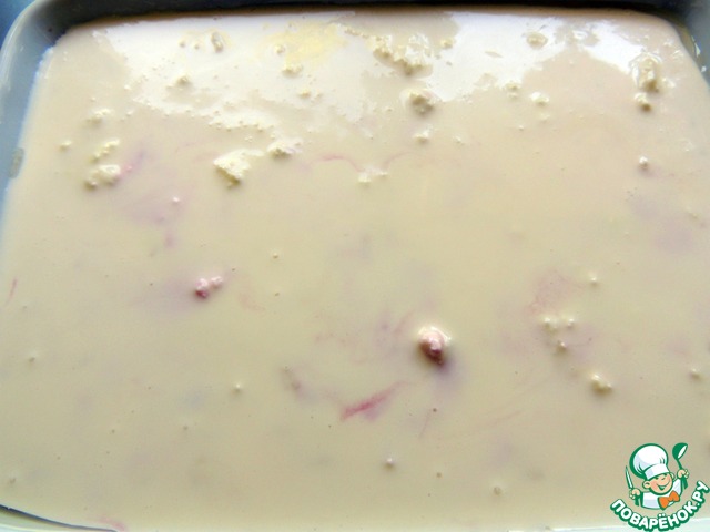 Белок взбить с 2 ст. л сметаны и смазать верх запеканки.