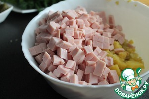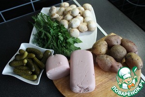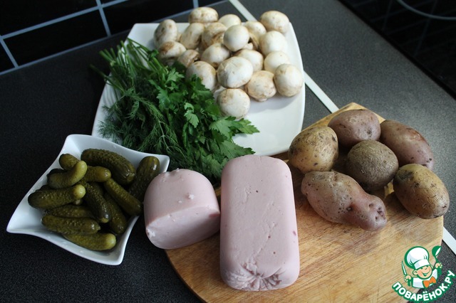 Ингредиенты для «Салат с ветчиной и грибами»: