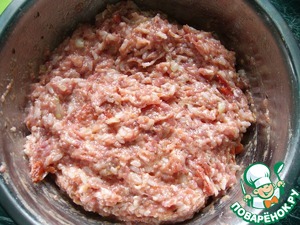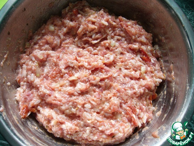 В прокрученное мясо добавить рис, нарезанную капусту (утолщения), яйцо, томаты в с/с, соль, приправу. Фарш хорошо перемешать.