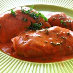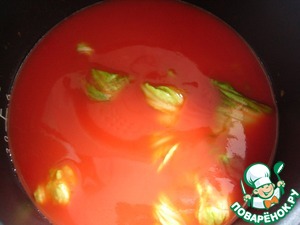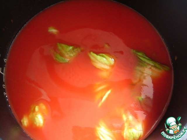 - Томаты в собственном соку (кусочками с пряными травами) — 2 ст. л.