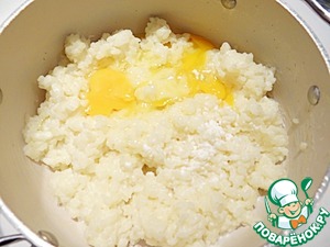 К каше добавляю яйца и ванилин, перемешиваю.