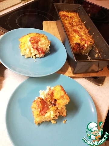 Выпекать при температуре 180° около часа. Немного охладить перед сервировкой. Вкусно с зелёным салатом.