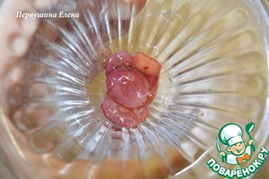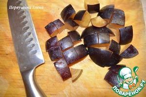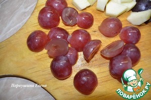 Ягоды виноград разрезать пополам. Если виноград мелкий (типа киш-миш), то лучше оставить цельными.
