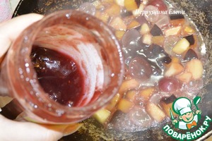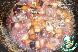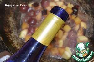 Обжарить слегка фрукты на сливочном масле в течении 1-й минуты.