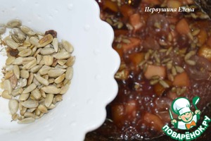 Добавить семечки, тушить еще минуту и выключить огонь.