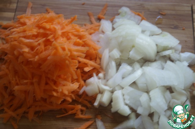 Очистить лук и морковь, сполоснуть в прохладной воде. Для плова лук мелко нарезать, морковь натереть на крупной терке.