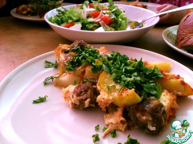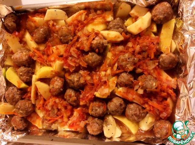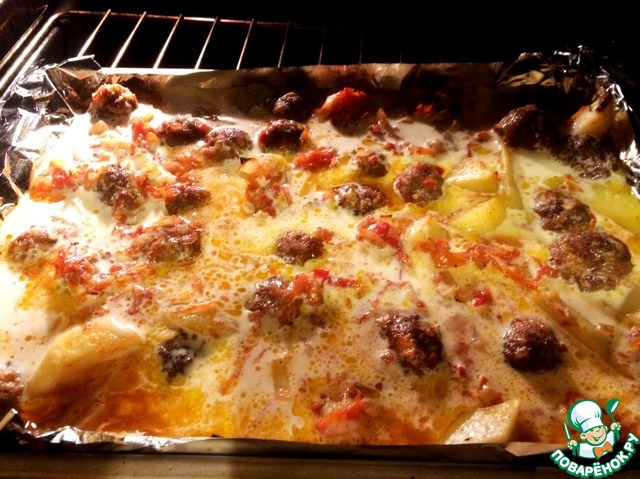 Рецепт «Тефтели, запеченные в духовке с картофелем»: