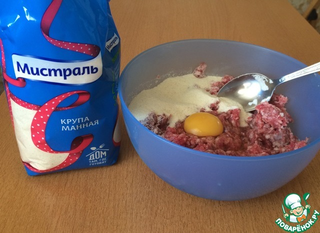 Фарш, яйцо. манку, соль и перец перемешиваем.