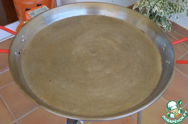Почти каждая испанская семья имеет в хозяйстве специальную сковороду – паэлью. Она широкая, мелкая и тонкая. Устанавливается на двойное кольцо, подключенное к газовому баллону. Таким образом, тепло идет как в середине сковороды по мелкому кольцу, так и по краям.