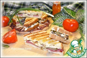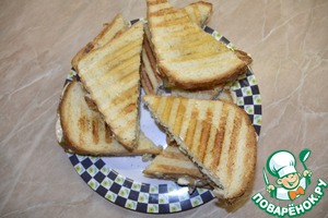 • Разогреть электрогриль до 200С и обжарить бутерброды,