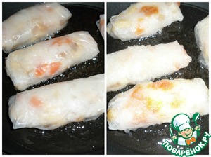 В сковороду наливаем растительное масло. Обжариваем наши спринг роллы с двух сторон. Выкладываем на салфетку, чтобы убрать лишнее масло.