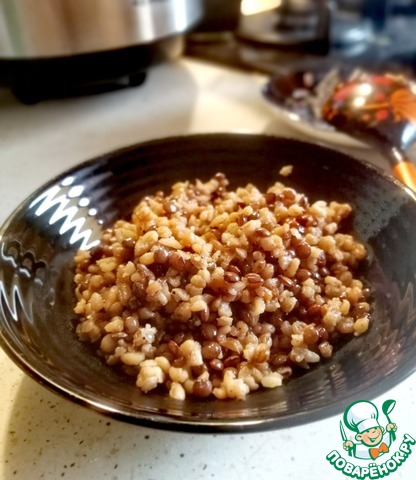 Каша из булгура и зелёной чечевицы, которые замечательно сочетаются друг с другом. Хороша как самостоятельное блюдо, так и в качестве гарнира к мясу, котлетам и колбасным изделиям.