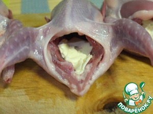 Смесью из оливкового масла, соли и перца обмазываем каждую тушку