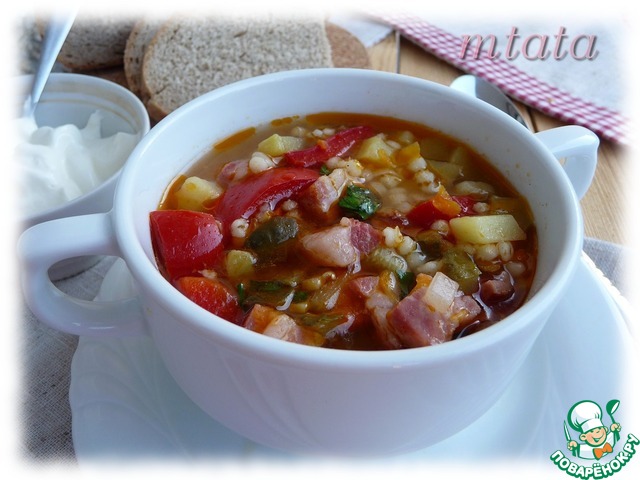 Рецепт «Рассольник с копченостями и болгарским перцем»: