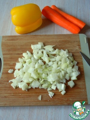 Лук мелко нарезаем, морковь натираем на крупной терке.