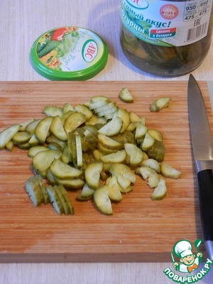Соленые огурцы нарезаем ломтиками и вместе с тушеными овощами выкладываем в бульон. Солим и перчим по вкусу, варим все вместе минут 5-10. -
