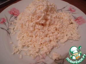 Брынзу натереть на терке и добавить к творожной смеси. Все перемешать.