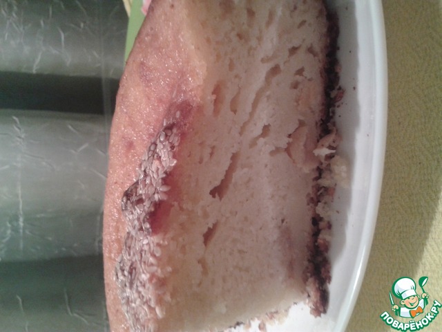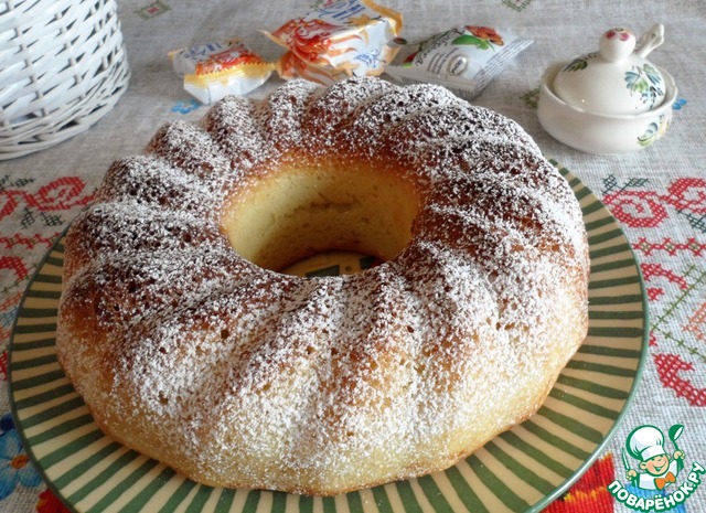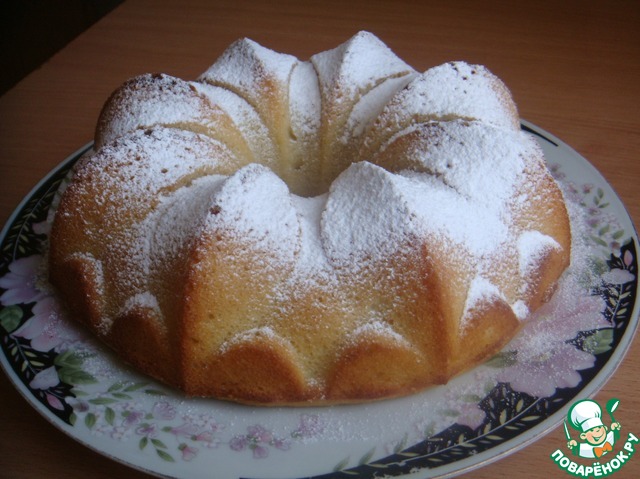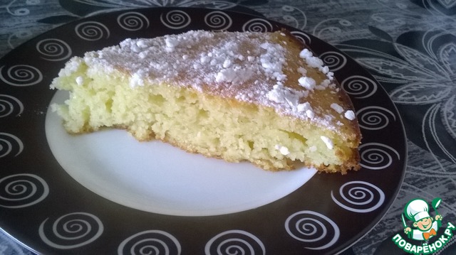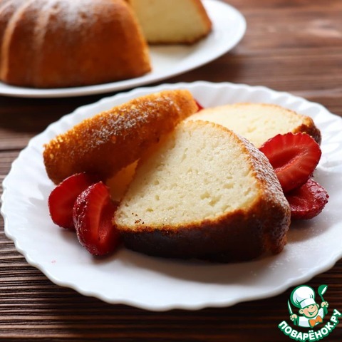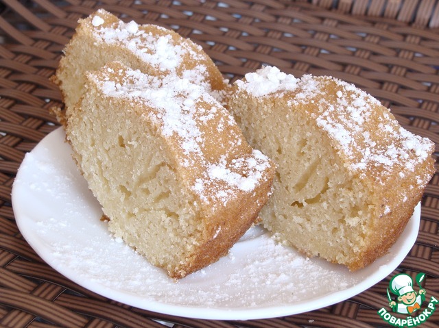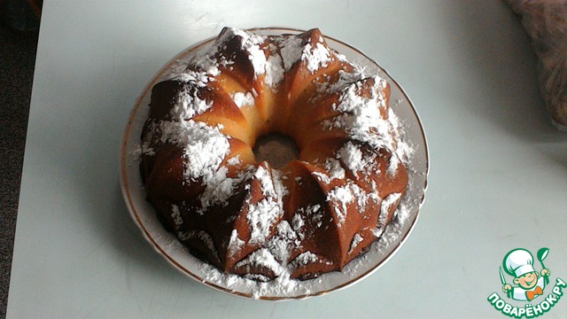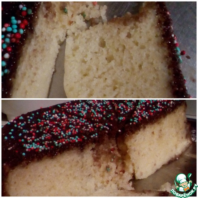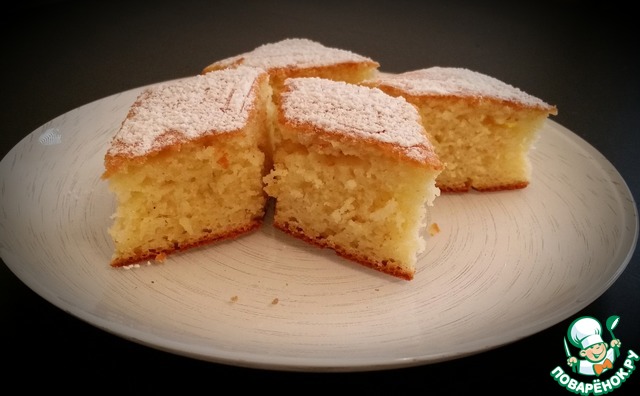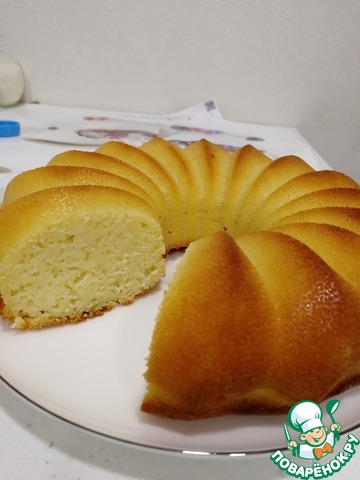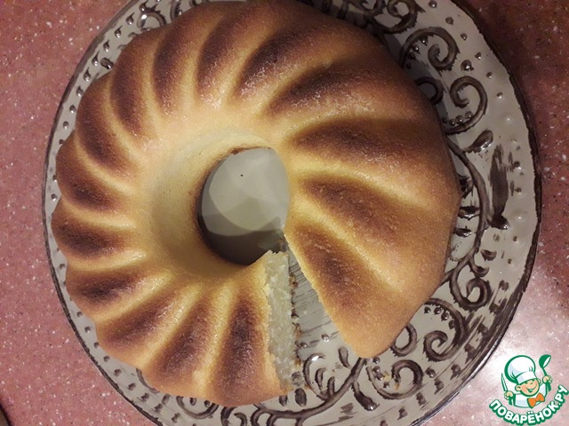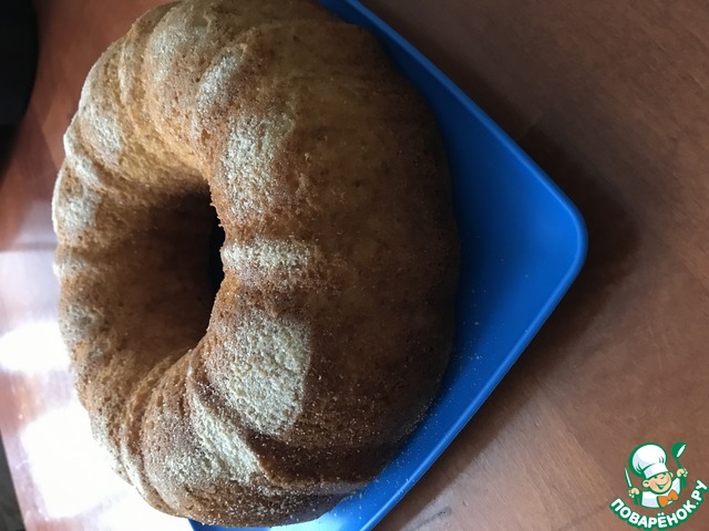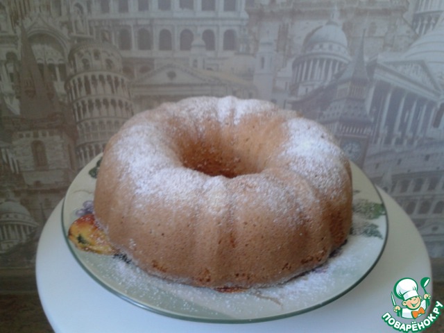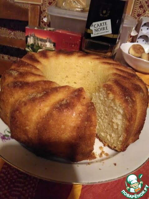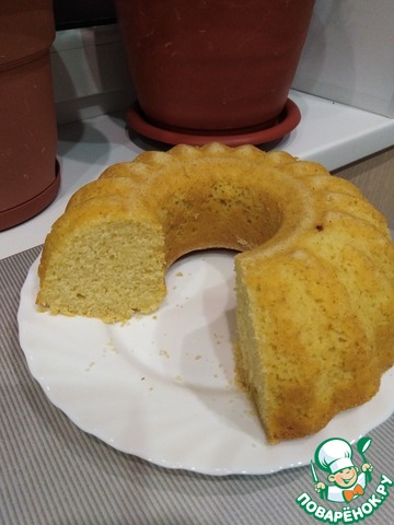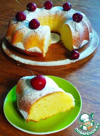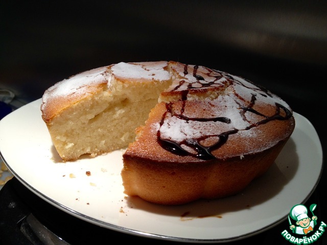Снаружи сладкая корочка, а внутри пушистый бисквит! Не трудоемкий и на удивление точный рецепт, я честно говоря сначала испугалась, что не пропечется,(потому что форма у меня совсем другая и не духовой шкаф, а мини-печка), но результат превзошел ожидания. Приятная сладость и аромат, не жирный, я добавила в тесто свежую вишню, это придало фруктовую кислинку