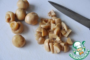 Берём любые грибы, идеально, конечно, лесные, но, за неимением, взяла варёные шампиньоны.