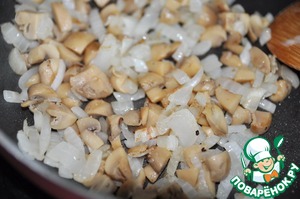 Кладём грибы к луку и обжариваем 5 минут до румяности, солим.