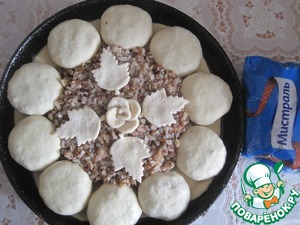• Делаем украшения для пирога. Растаиваем, за 10 мин до выпечки смазываем яйцом. Выпекаем.
